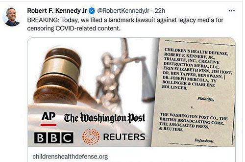 Robert Kennedy Jr. wrote two best-selling books addressing the COVID scandal (listed below) - and has recently filed (Januaray 2023) an important lawsuit against the media for suppressing and silencing those warning about the dangerous false narrative of the COVID program. Tucker Carlson interviews Robert concerning this landmark lawsuit (also included below).