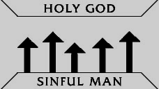 This diagram illustrates that God is holy and man is sinful. A great gulf separates the two. The arrows illustrate that man is continually trying to reach God and eternal life through his own efforts, such as a good life, philosophy, religion/religious activity or church affiliation - but he always - and will eternally fail. If God could be reached through those things - Jesus Christ's sacrifice on the cross was for nothing.